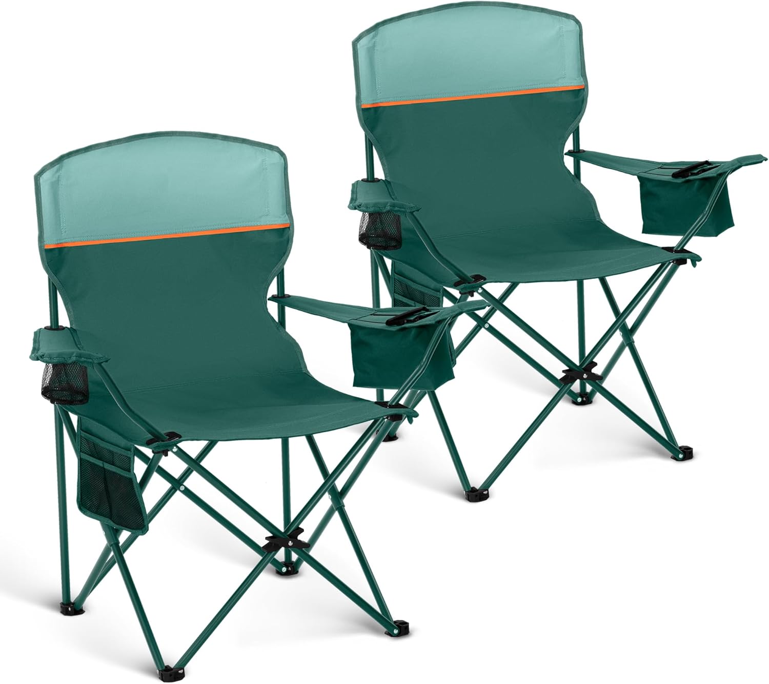 HIGH POINT SPORTS Sedia da campeggio pieghevole da esterno, set da 2 con braccioli (verde) fino a 102 kg