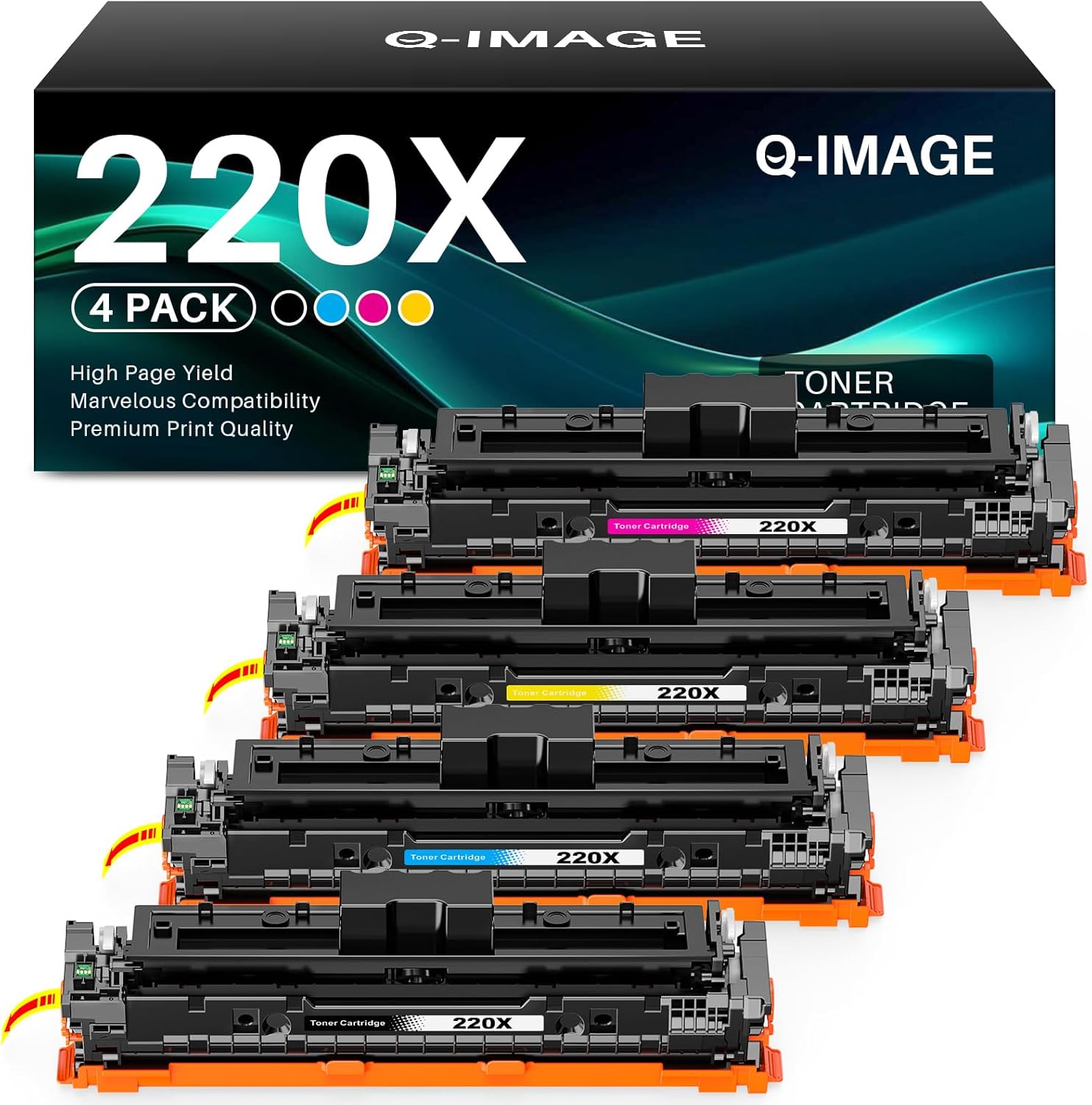 - Il pacco include 4 toner: 1 Nero 220X, 1 Ciano 220X, 1 Giallo 220X, 1 Magenta 220X.