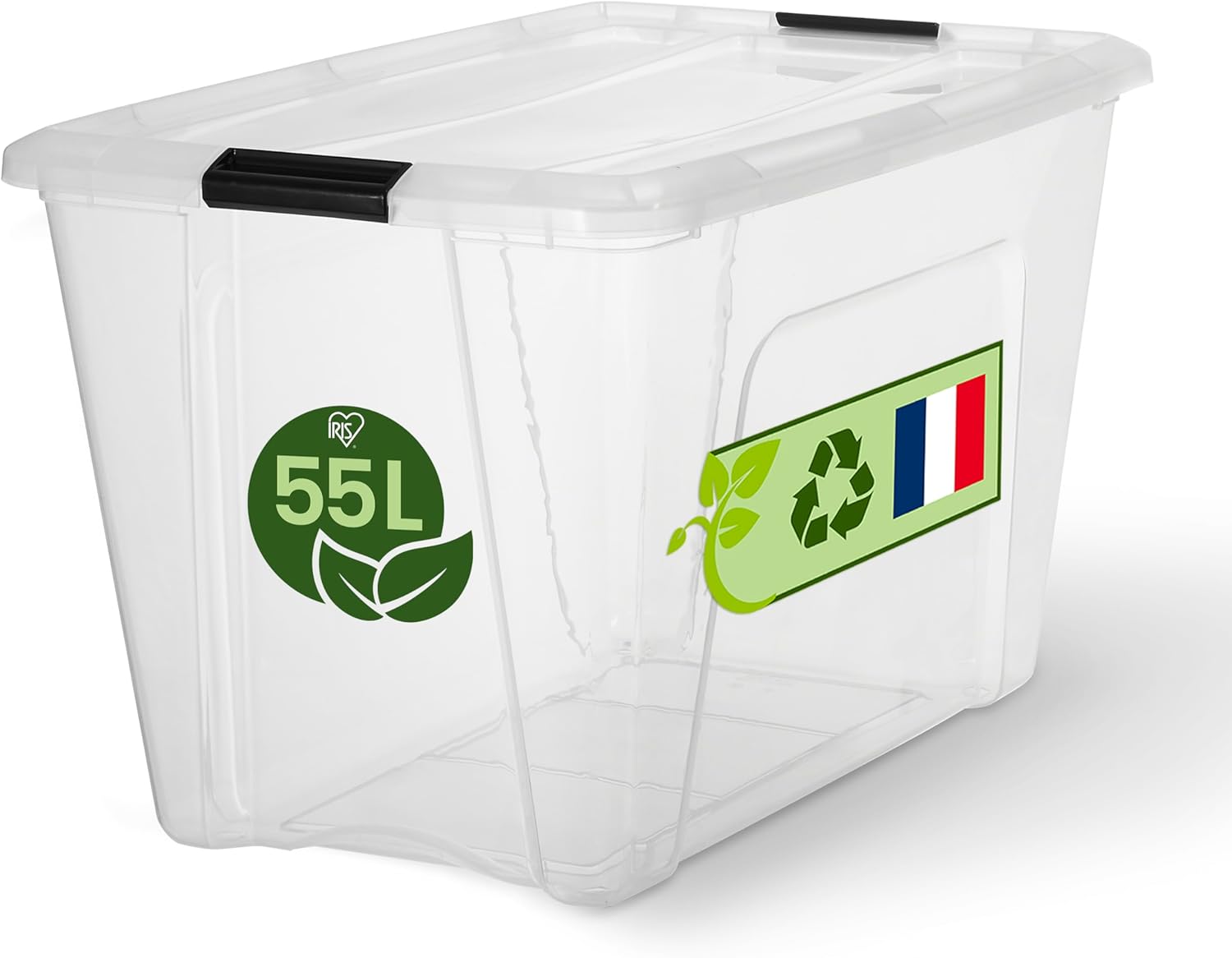 Iris Ohyama BSB-55 scatola di raccolimento in plastica trasparente da 55L con coperchio, impilabile