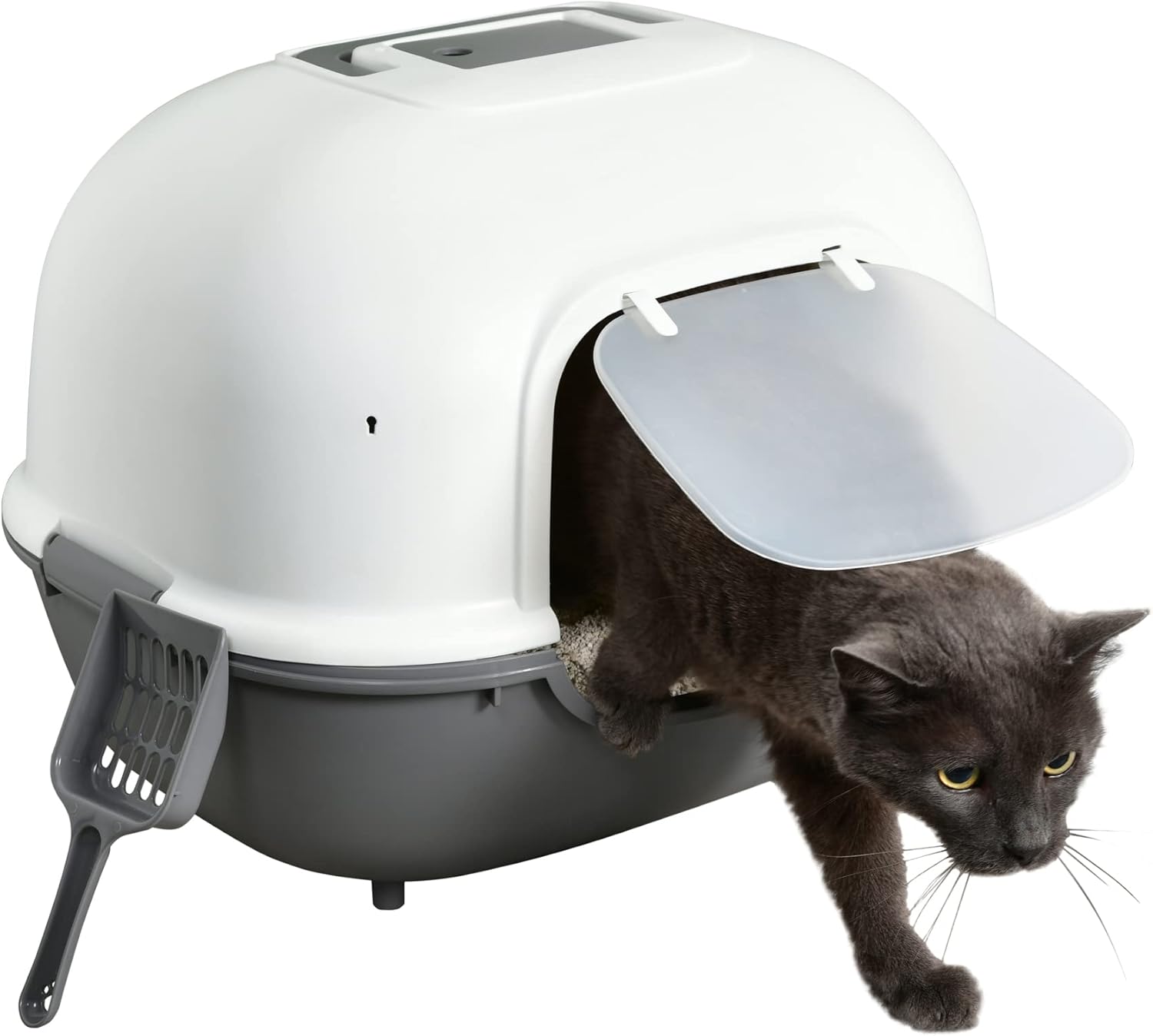 - Iris Ohyama CLH-12 vaschetta per lettiera con paletta, grigio, pareti rimovibili e tetto aperto