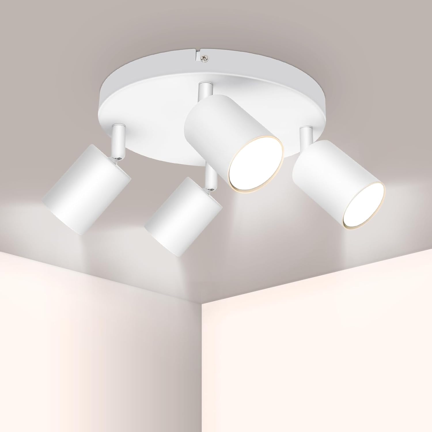 Ketom plafoniera LED da soffitto con 4 faretti orientabili GU10 (bianco) – rotonda moderna