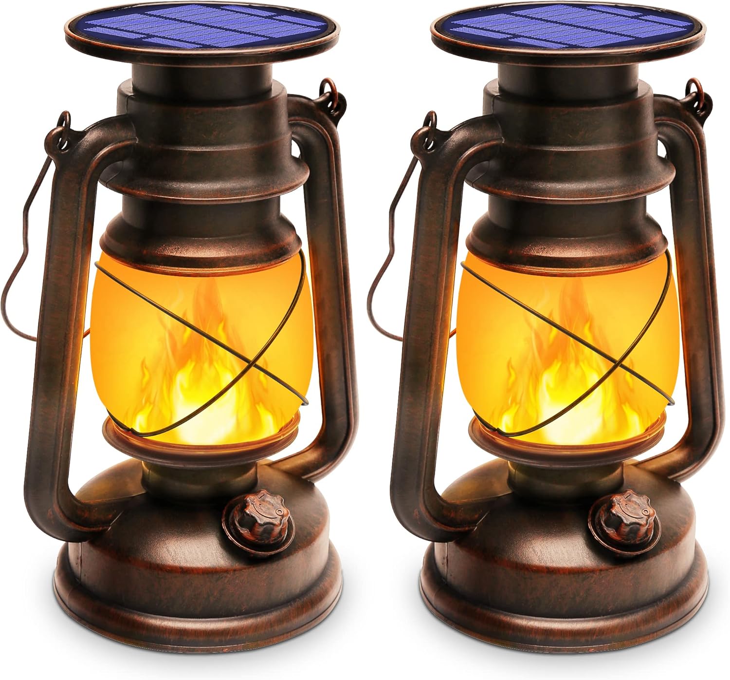 KINGLEAD Lanterna Solare da Esterno Vintage con Effetto Fiamme, 2 Pezzi (IP65)