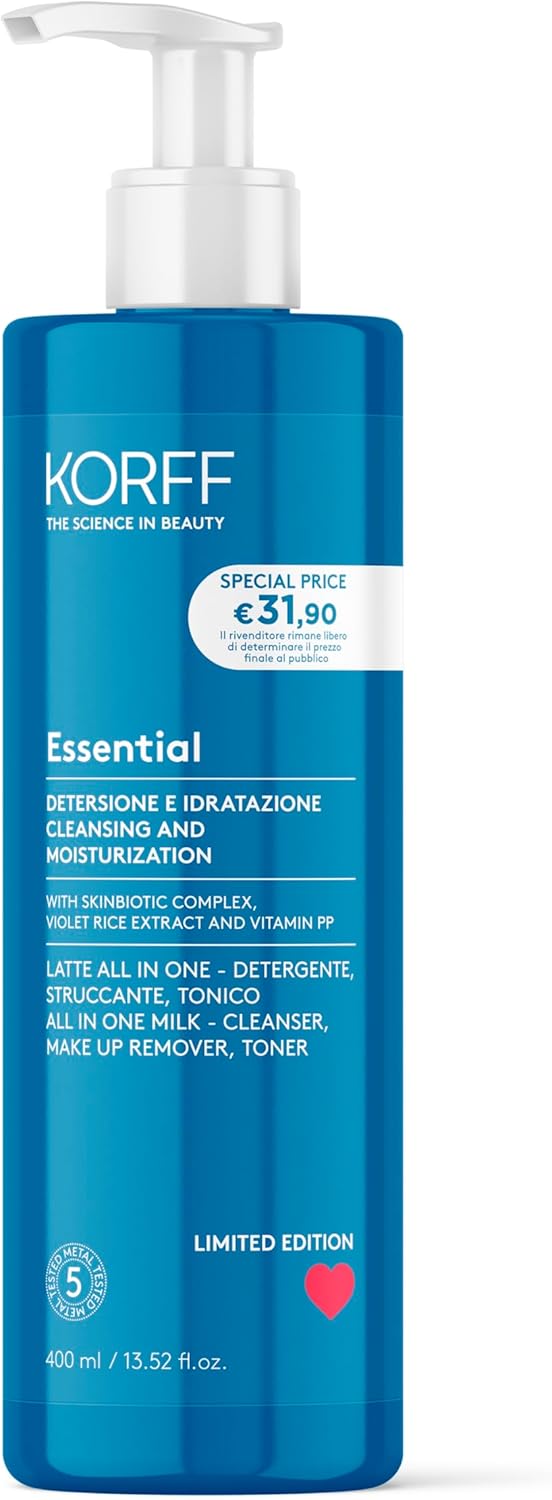 Se cerchi un prodotto unico per la routine del viso, il Korff Essence Latte Viso All in One impostato su triplice azione può avere senso. L’idea è semplice: usarlo come detergente e struccante, poi come passaggio tonificante, senza cambiare gesto ogni volta. Sulla carta è pensato per tutti i tipi di pelle, con un’attenzione particolare a chi ha pelle secca o molto secca, dove un comfort immediato e duraturo viene indicato come uno dei punti forti.