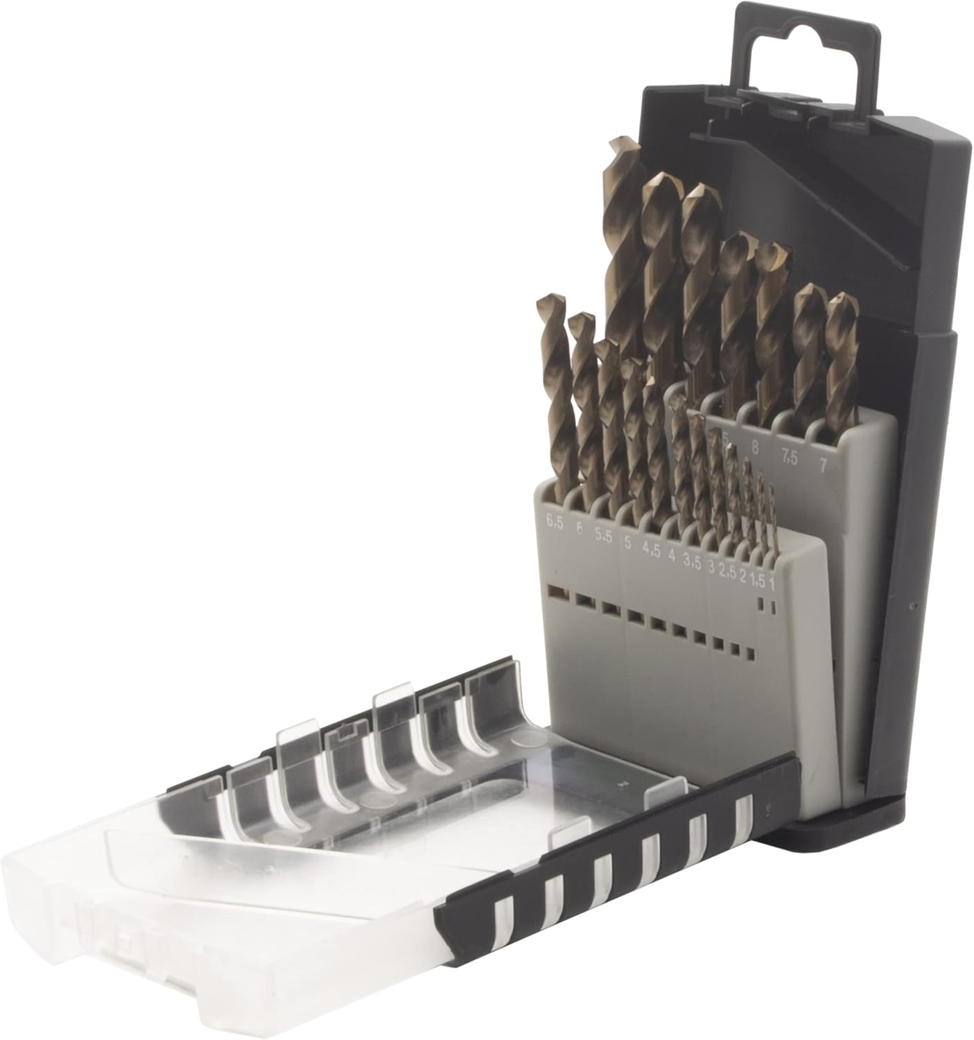Krino 01155301 – Set punte elicoidali rettificate al cobalto (HSS Co 5%), 19 pezzi per acciaio inox e metalli