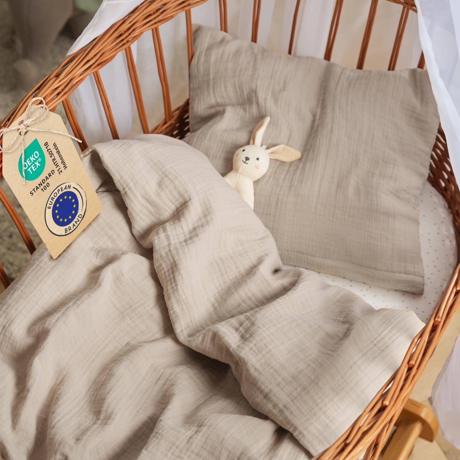 Laleni propone una biancheria da letto per bimbo realizzata in cotone a trama mussola, pensata per creare un ambiente più traspirante durante il sonno. Il formato indicato è 80 x 80 cm e il modello viene descritto come “passeggino tortora”, quindi l’idea è quella di un set/ricambio da usare in contesti dove serve un tessuto morbido e gestibile, senza complicazioni.