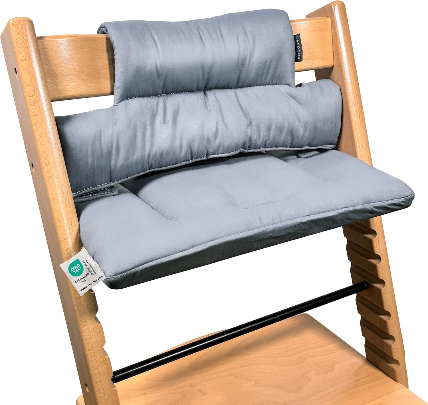 LaLoona Cuscino Seduta per Seggiolone Stokke Tripp Trapp (2 pezzi) in cotone OEKO-TEX, grigio rivestito