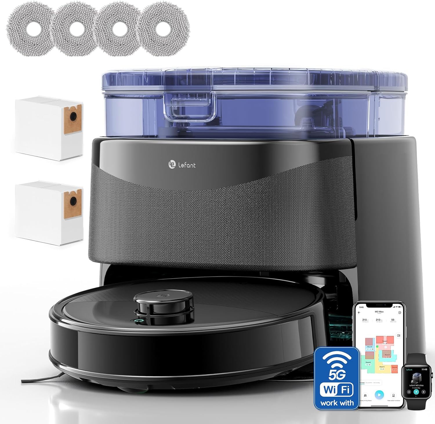 Lefant M3 Ultra robot aspirapolvere lavapavimenti con mappatura laser dToF 360°, 23.000Pa e autosvuotamento (nero)