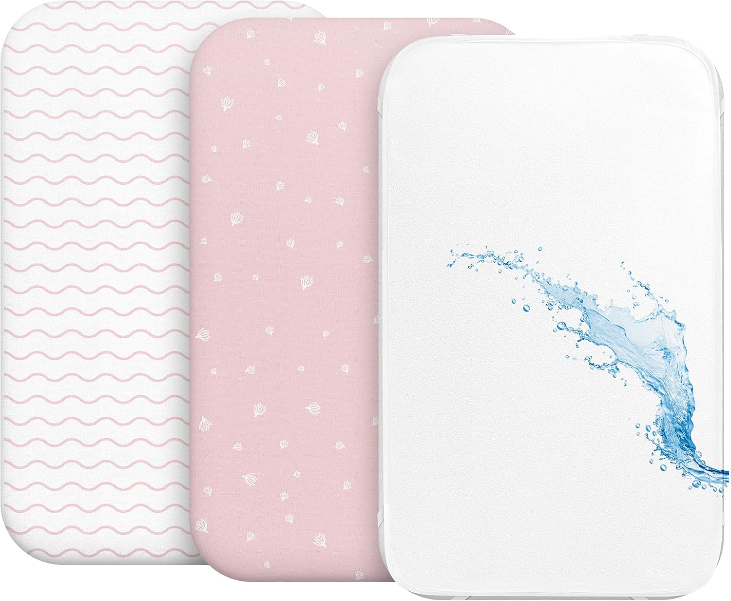 Set lenzuola 3-in-1 per culla/cododo 55x90 con coprimaterasso impermeabile 55x90 (rosa)
