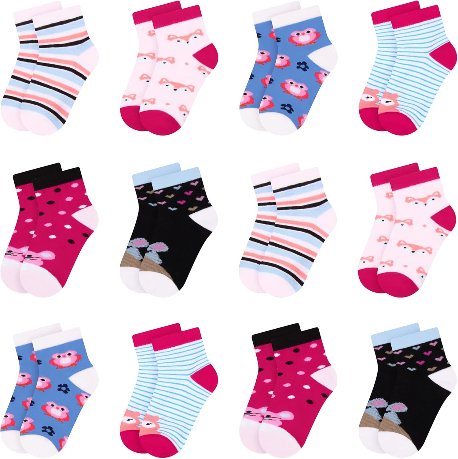 Libella 12 paia di calzini da ginnastica per bambini (1-12 anni), a pois e strisce colorati