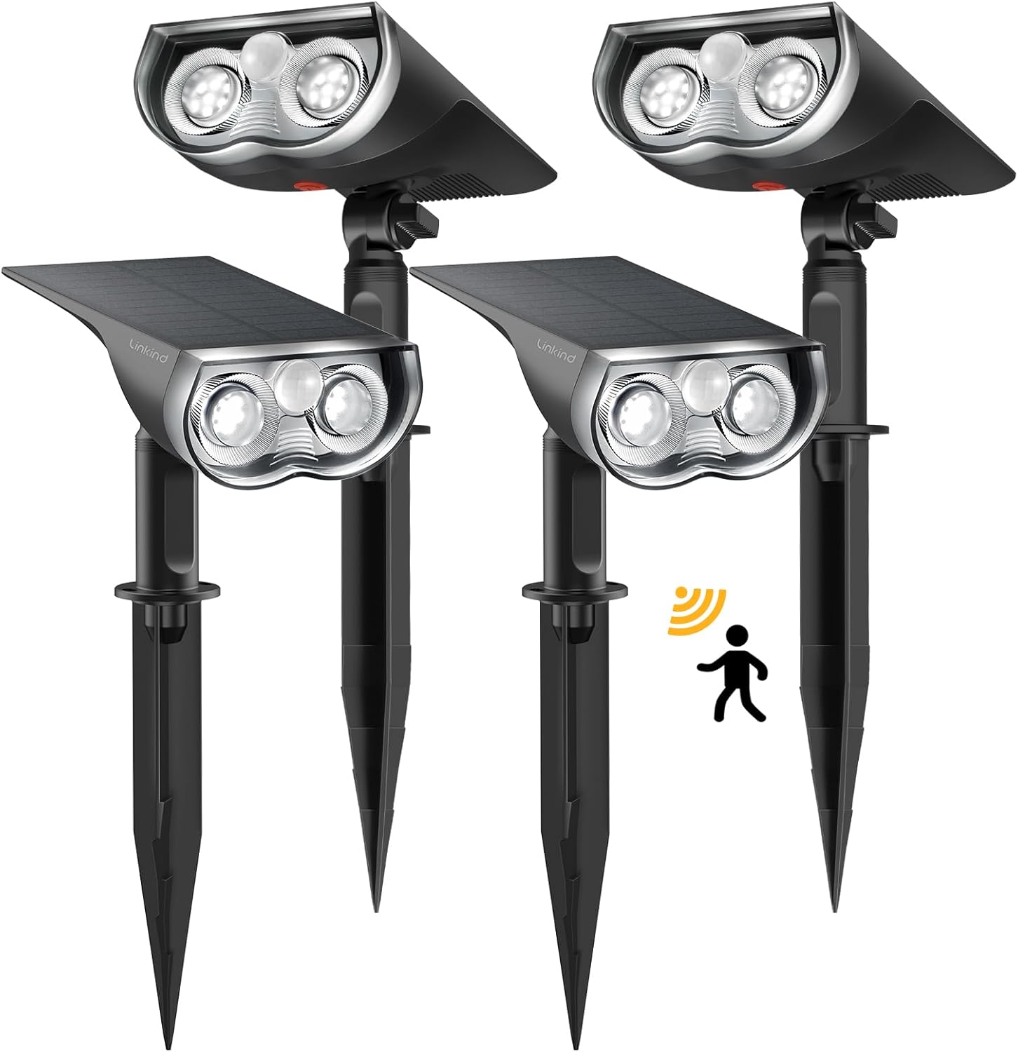 Linkind 4 faretto solare con sensore di movimento 6500K bianco freddo, 3 modalità, IP67 (2 supporti)
