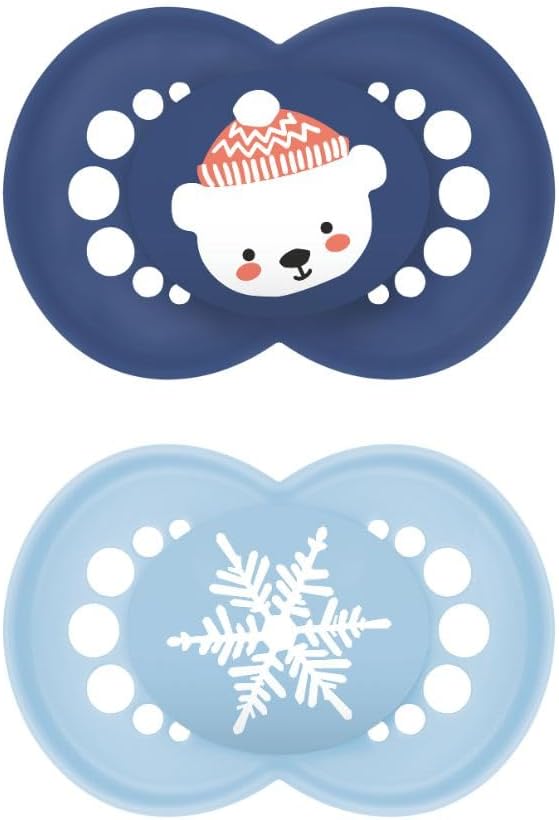 MAM Original Winter Limited Edition succhietto 16+ mesi (set da 2) con tettarella in silicone e porta ciuccio/sterilizzatore, azzurro