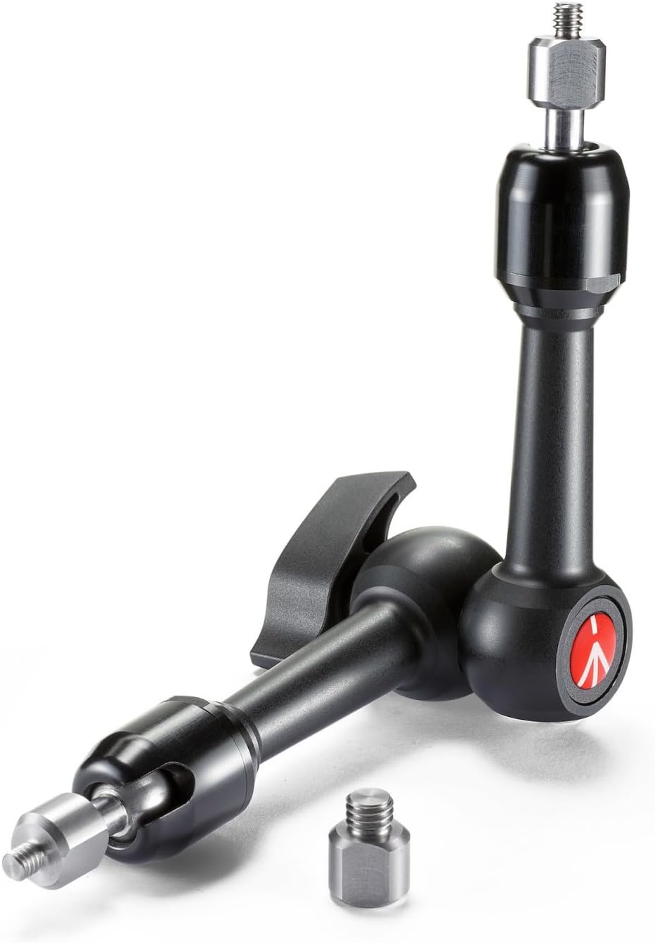 Il braccetto Manfrotto 244MINI combina materiali e design per offrire una soluzione di supporto compatta e affidabile. La rotazione è agevolata dall'impugnatura sagomata che facilita l'orientamento rapido dell'accessorio montato. È compatibile con adattatori intercambiabili, questo permette di adattarlo a diverse configurazioni senza interventi complessi. Non è progettato per sostituire bracci professionali di grandi dimensioni, quindi valuta il carico e l'uso prima di affidargli strumenti molto pesanti.