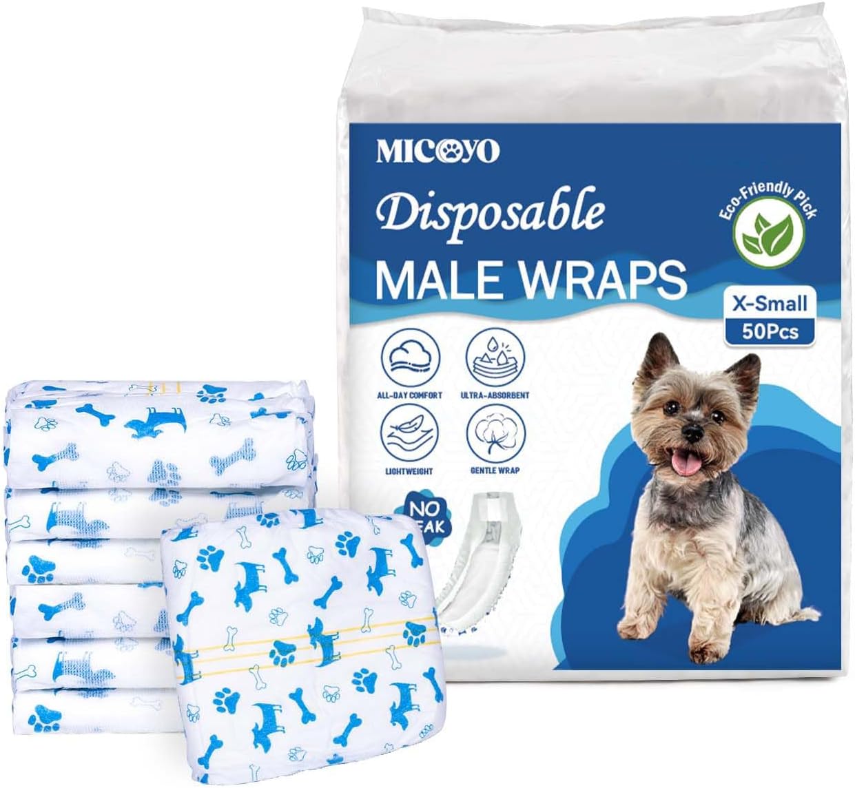 - MICOOYO pannolini usa e getta per cani maschi con indicatore di umidità (confezione da 20, 4 taglie)