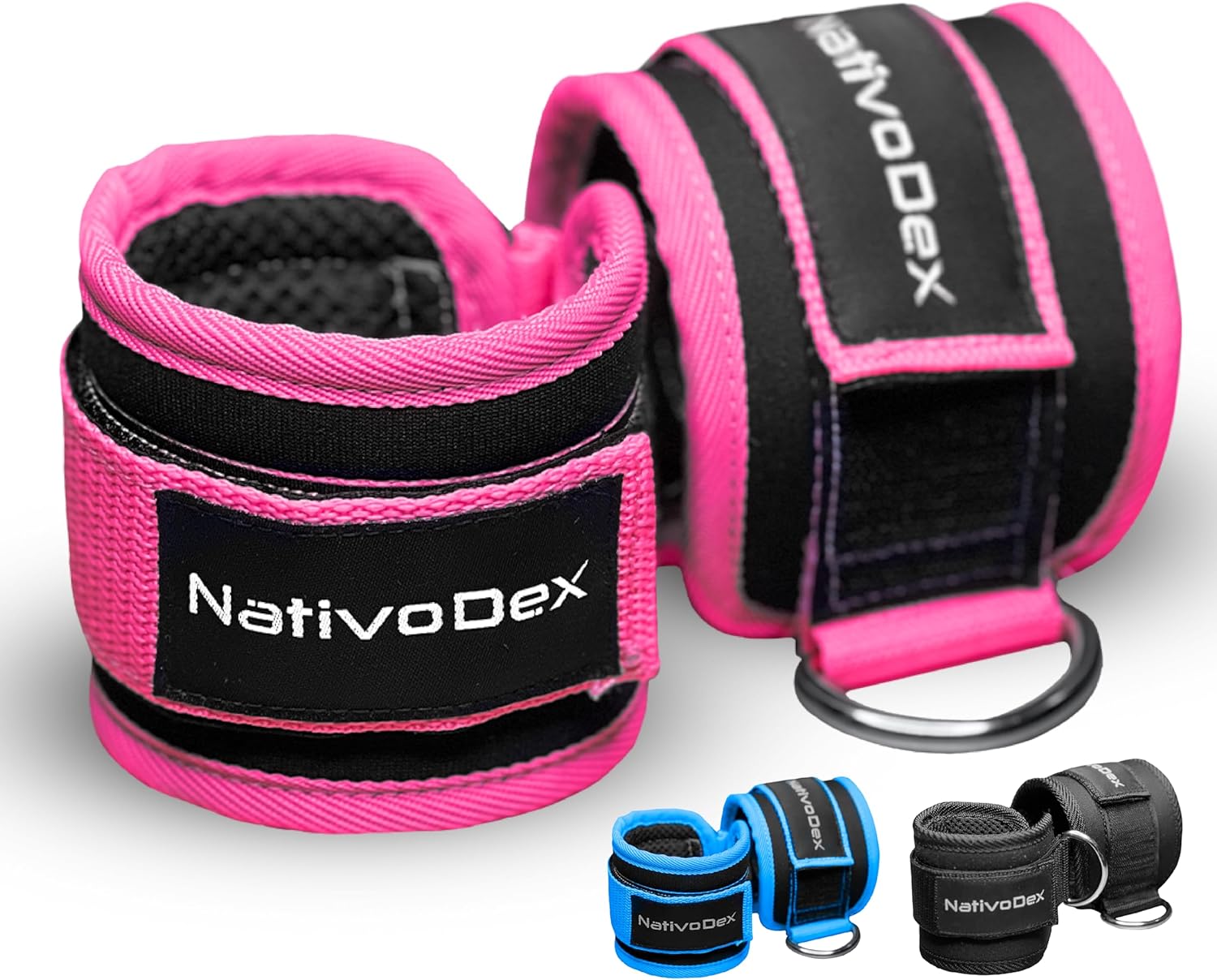 Le cavigliere NativoDex uniscono funzionalità e design. Sono imbottite in neoprene per ridurre sfregamenti e aumentare il comfort, mentre gli anelli in metallo rinforzato garantiscono tenuta durante gli esercizi con pesi o con i cavi. Disponibili in nero, blu e rosa, si adattano a diversi stili e preferenze.