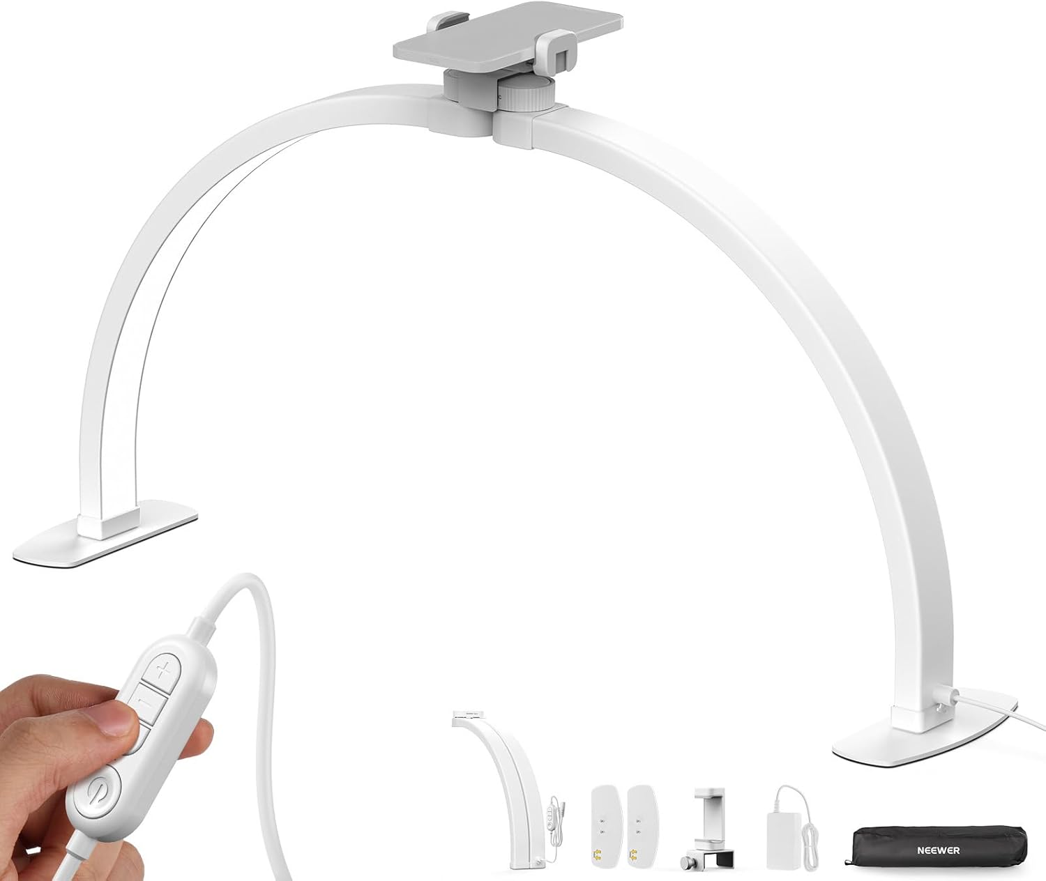 NEEWER BASICS HM02-D Lampada per unghie a mezzaluna da scrivania LED 29” da 36W con portatelefono