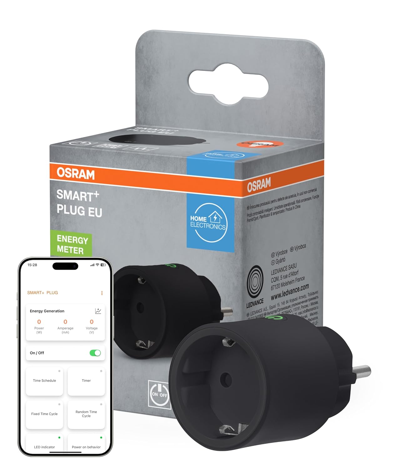 OSRAM Presa EU SMART+ Matter Plug: smart plug nera con monitoraggio consumi e controllo con Alexa, Google Home e Apple HomeKit