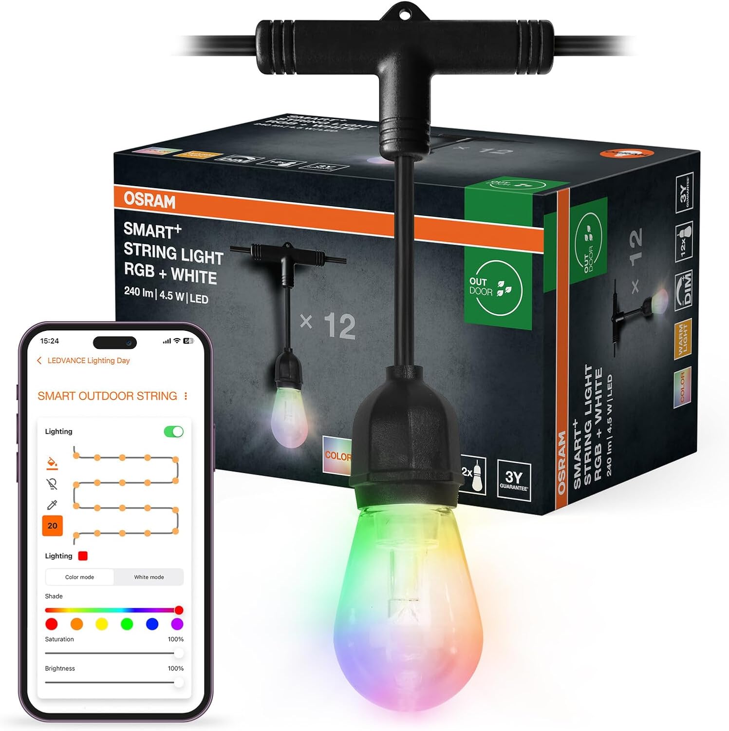 Questo set di luci da esterno unisce atmosfera e controllo smart per terrazze e giardini. La catena OSRAM SMART+ String offre sia luce bianca calda regolabile che illuminazione colorata RGB, perfetta per creare scenari diversi a seconda dell'occasione, e rende più semplice gestire l'illuminazione con la SMART+ App o un assistente vocale. Se cerchi una soluzione per serate all'aperto o decorazioni stagionali, la catena di luci colorate WiFi si propone come scelta pratica e versatile.