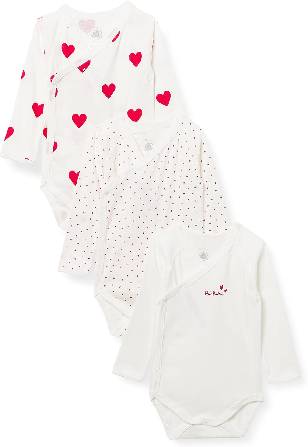 Petit Bateau A00az body neonato manica lunga con chiusura a incrocio (confezione da 3)