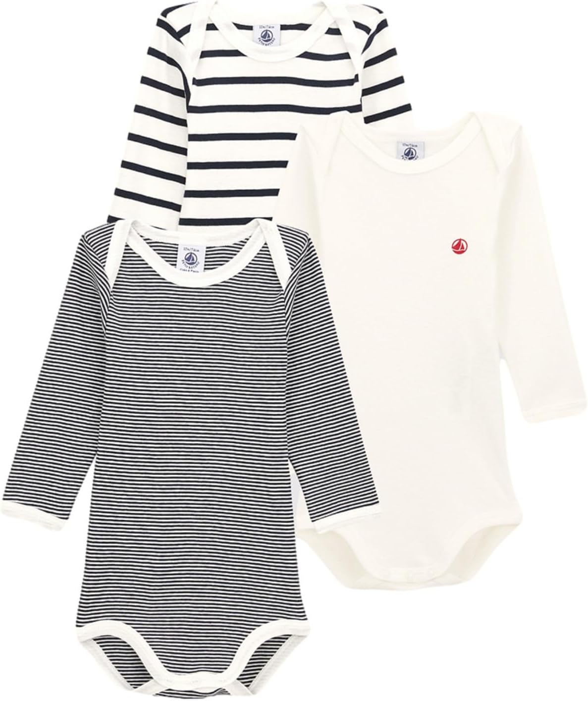 Petit Bateau A01TB body a righe a maniche lunghe 100% cotone (pacco da 3) unisex 0-24 mesi