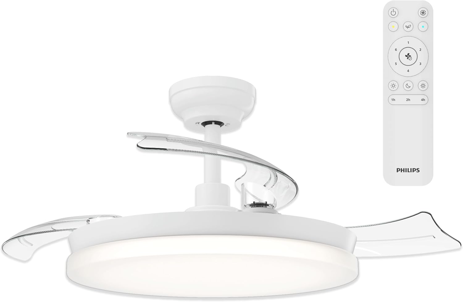 Philips Solr ventilatore a soffitto con pale retrattili e luce LED integrata, 3 pale, Luce Bianca regolabile