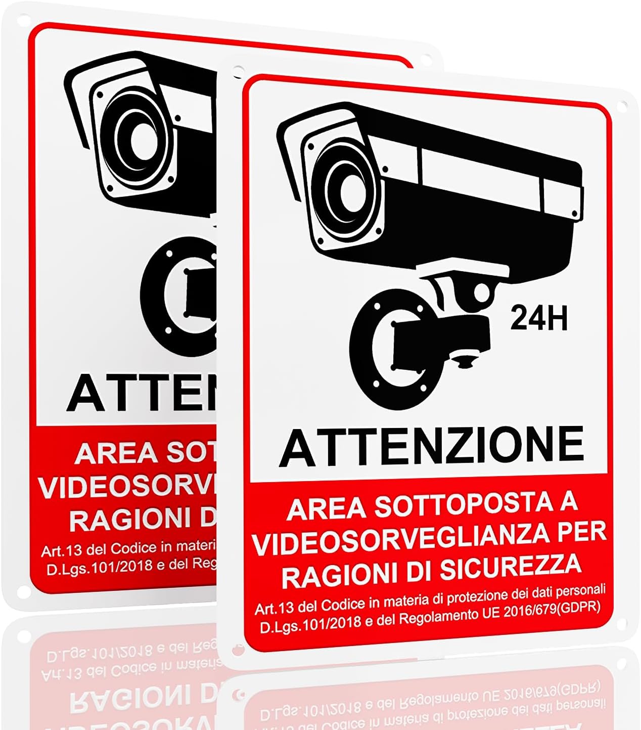Ha senso comprarlo se ti serve un cartello da esterno in alluminio, in formato 18x25 cm, con impostazione pensata per avvisare sulla videosorveglianza e con vantaggio pratico del set da 2 per coprire più punti.
