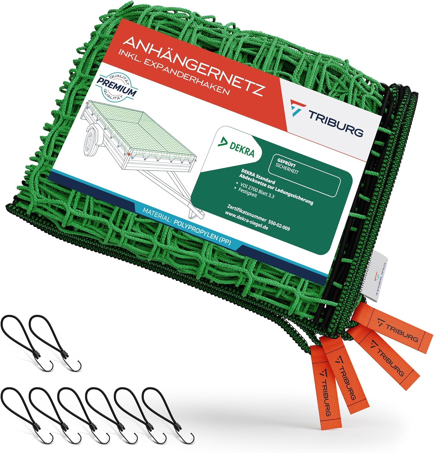 - TRIBURG rete per rimorchio 1,5 x 2,2 m con marcature angolari e tenditore in gomma