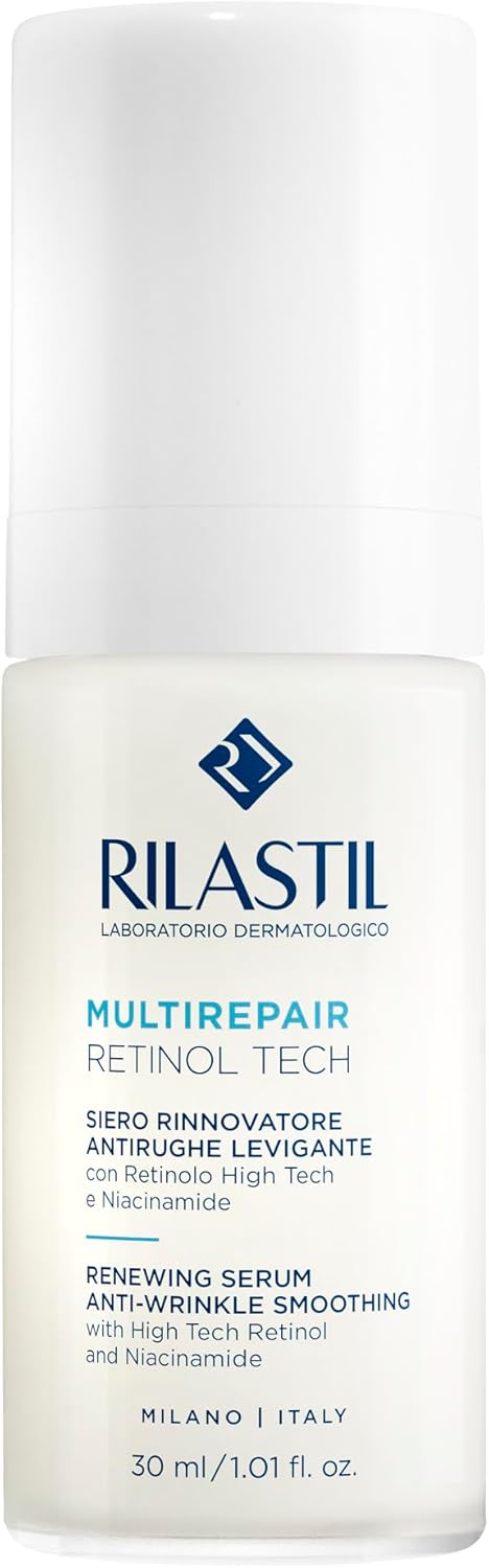 Rilastil Multirepair Retinol Tech è un siero rinnovatore antirughe pensato per agire sulle linee sottili e sui segni dell’età su viso, collo, décolleté e mani. Realizzato con Retinolo High Tech microincapsulato a rilascio prolungato e Niacinamide, propone una combinazione utile per chi cerca una routine serale mirata alla levigatura della pelle senza rinunciare a una sensazione di comfort sulla pelle.