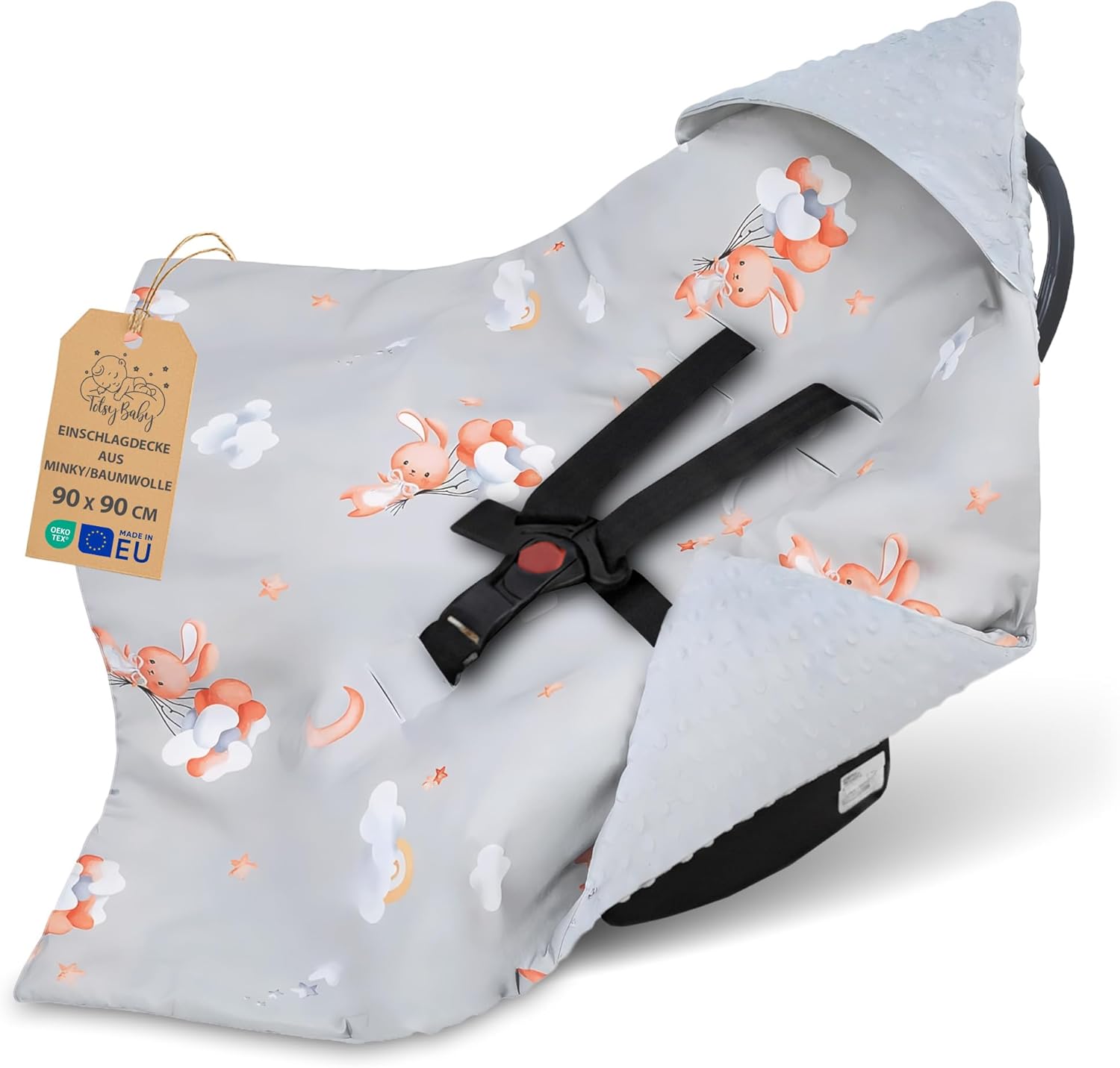 Per sfruttarlo al meglio piega la coperta attorno al bambino mantenendo le aperture per le cinture allineate al sistema di ritenuta del seggiolino. Puoi usare il lato con cappuccio nelle giornate più fredde e il lato opposto per un effetto più leggero. Ti conviene se cerchi un accessorio pratico che semplifichi gli spostamenti con il neonato, con la comodità di poterlo lavare in lavatrice e riutilizzare senza perdere morbidità.