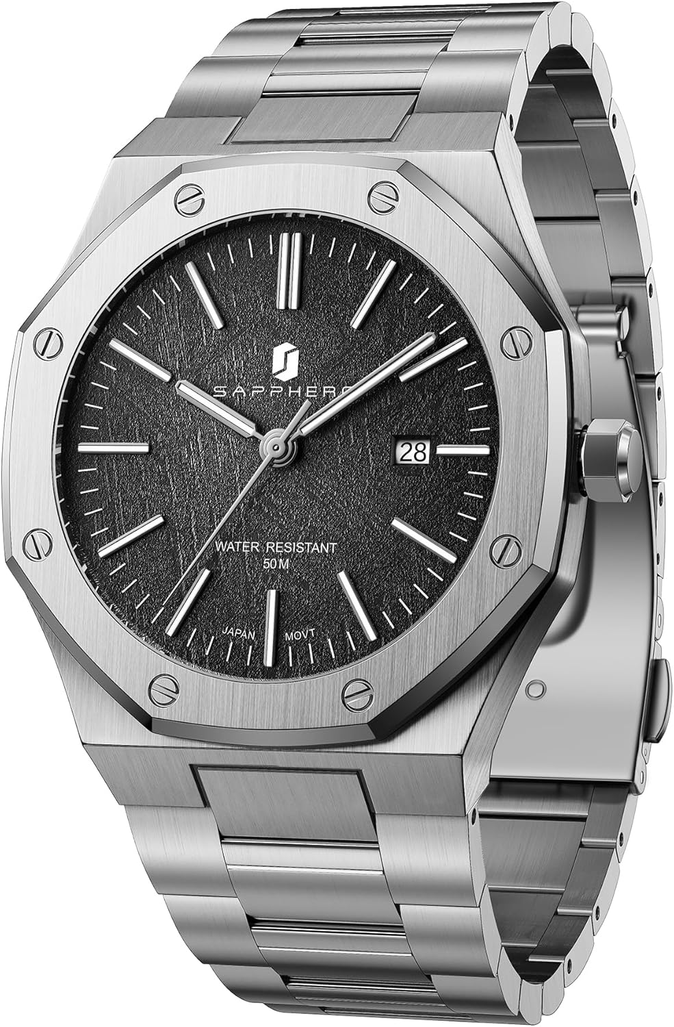 Se vuoi un orologio da uomo con stile classico ma con un dettaglio distintivo (forma ottagonale e motivo a scacchiera), e ti interessa un quarzo con movimento MIYOTA e calendario a ore 3, questo SAPPHERO può rientrare bene tra le scelte “pratiche e curate” per l’uso quotidiano.