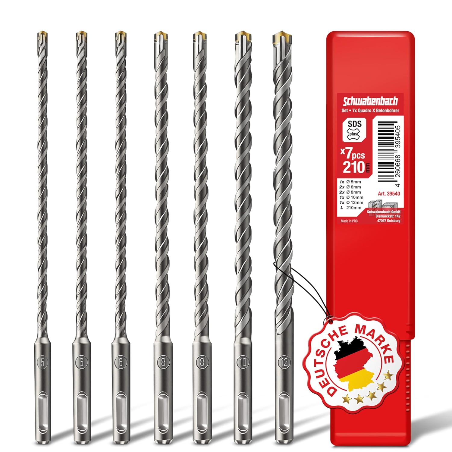 SCHWABENBACH Set Punte Trapano SDS Plus 7 Pezzi Ø 5/6/8/10/12 mm x 210 mm – Compatibile con Bosch