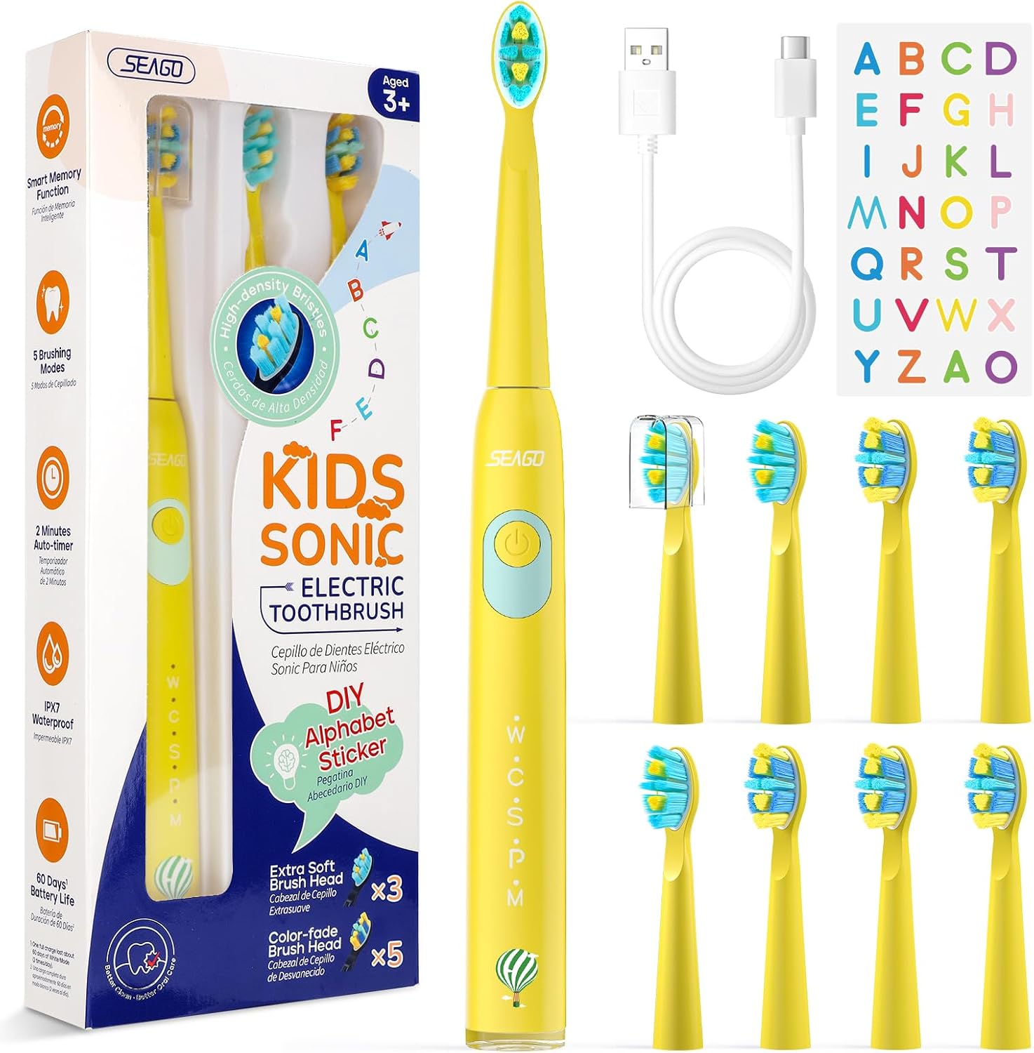 Seago spazzolino elettrico bambini 6-12 anni SG-2303 con timer da 2 minuti e 8 testine