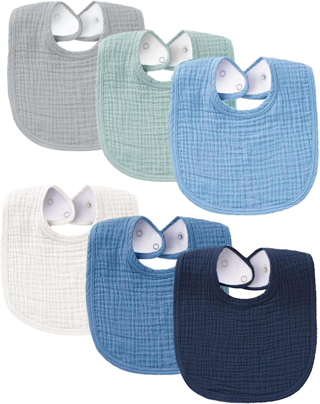 - SLOSH 6 bavaglini neonato in cotone con bottoni regolabili (3–24 mesi)