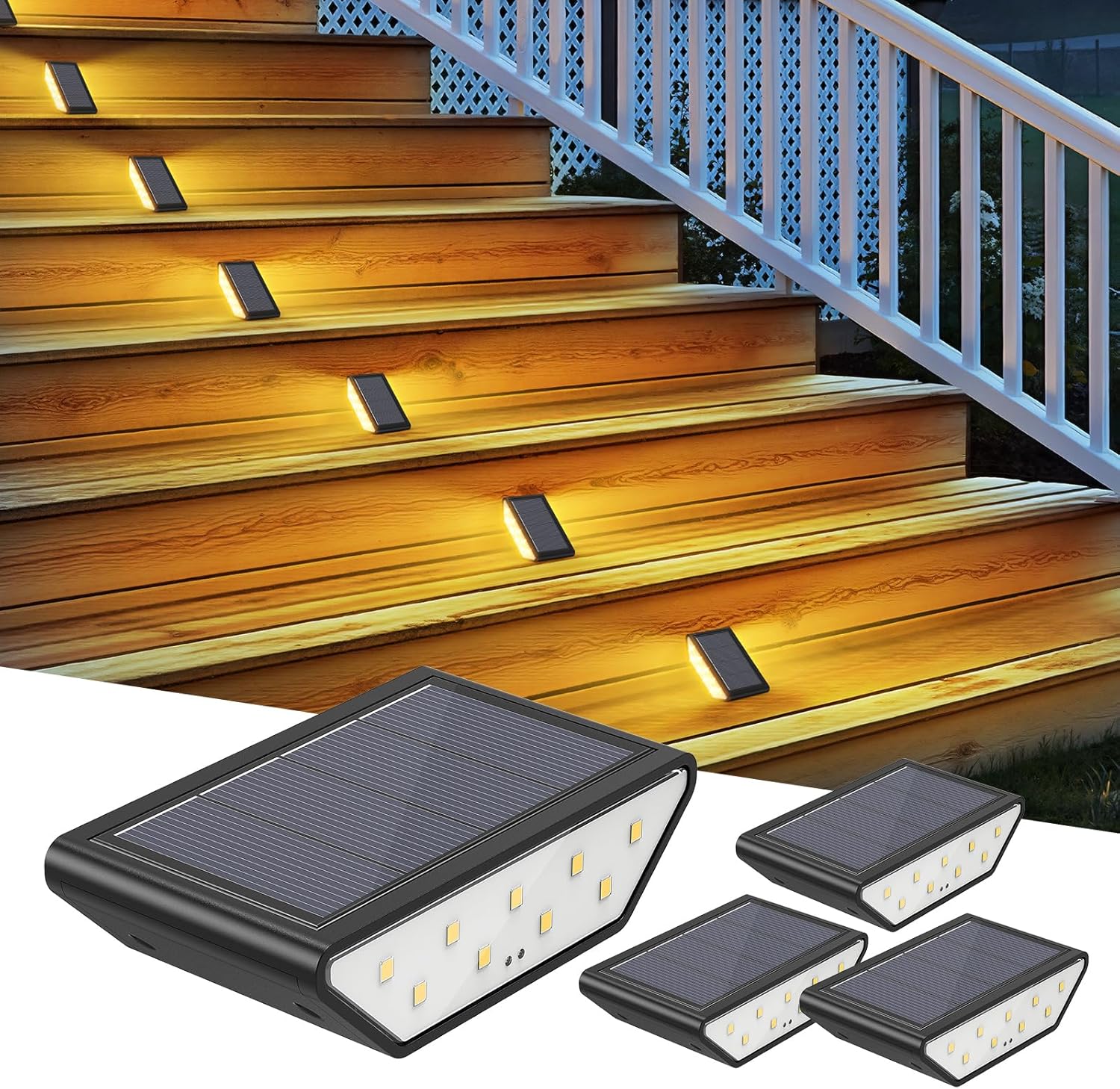Se di sera la scala diventa “un punto interrogativo” — gradini poco visibili, passi che sembrano tutti uguali, rischio di inciampare — una lampada dedicata può fare la differenza. Smiling Shark propone un set da 4 luci solari pensate per l’illuminazione dei gradini, con un’idea semplice: accendersi automaticamente al crepuscolo e illuminare in modo mirato la zona di appoggio.