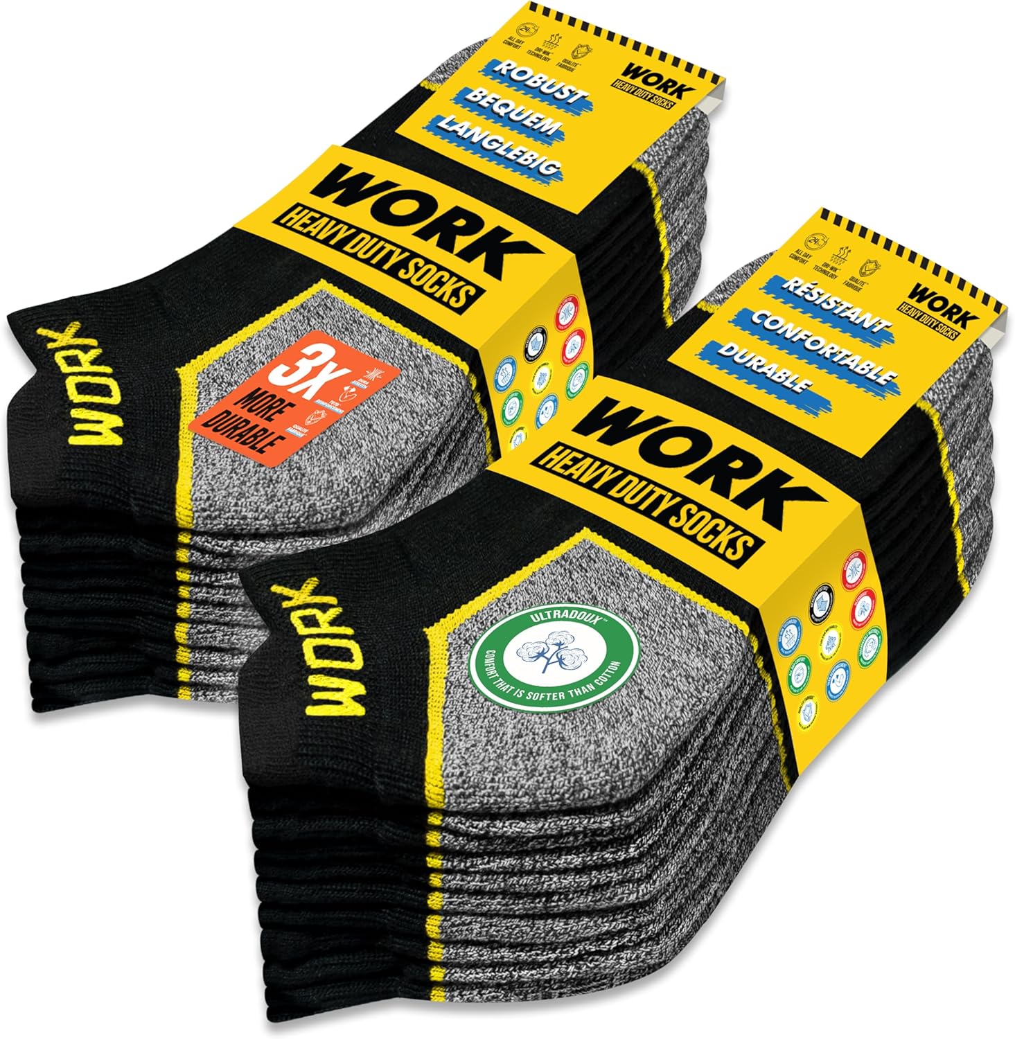 SOXCO propone un pacco da 10 paia di calze da lavoro corti, pensate per chi passa molte ore in ambiente operativo nelle stagioni calde. Il tessuto HEX-COMB con ammortizzazione offre comfort prolungato e può contribuire a ridurre la fatica del piede, con una fascia di prezzo che punta alla convenienza soprattutto per chi necessita di calzini di uso professionale.