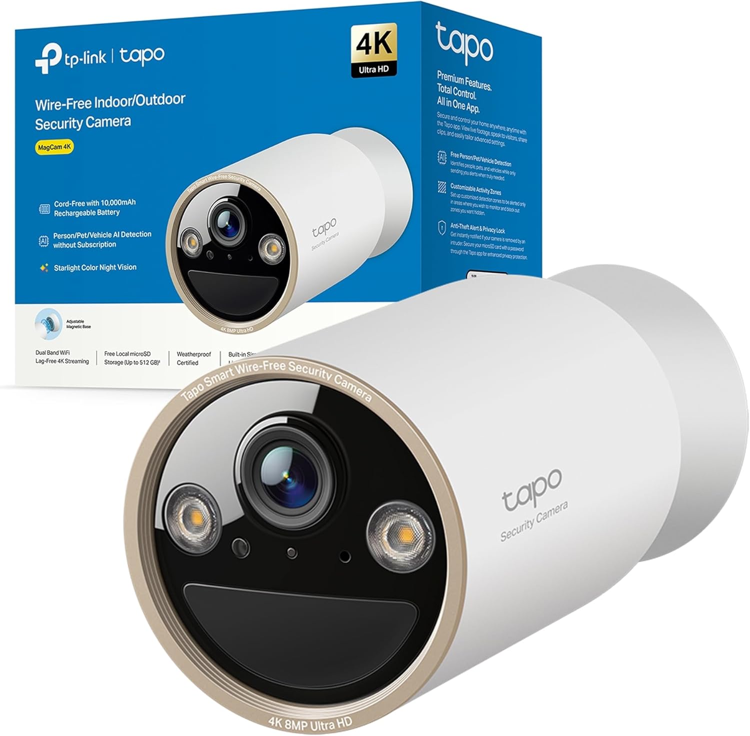 Tapo C460 4K 8MP: telecamera WiFi a batteria con visione notturna a colori Starlight e base magnetica