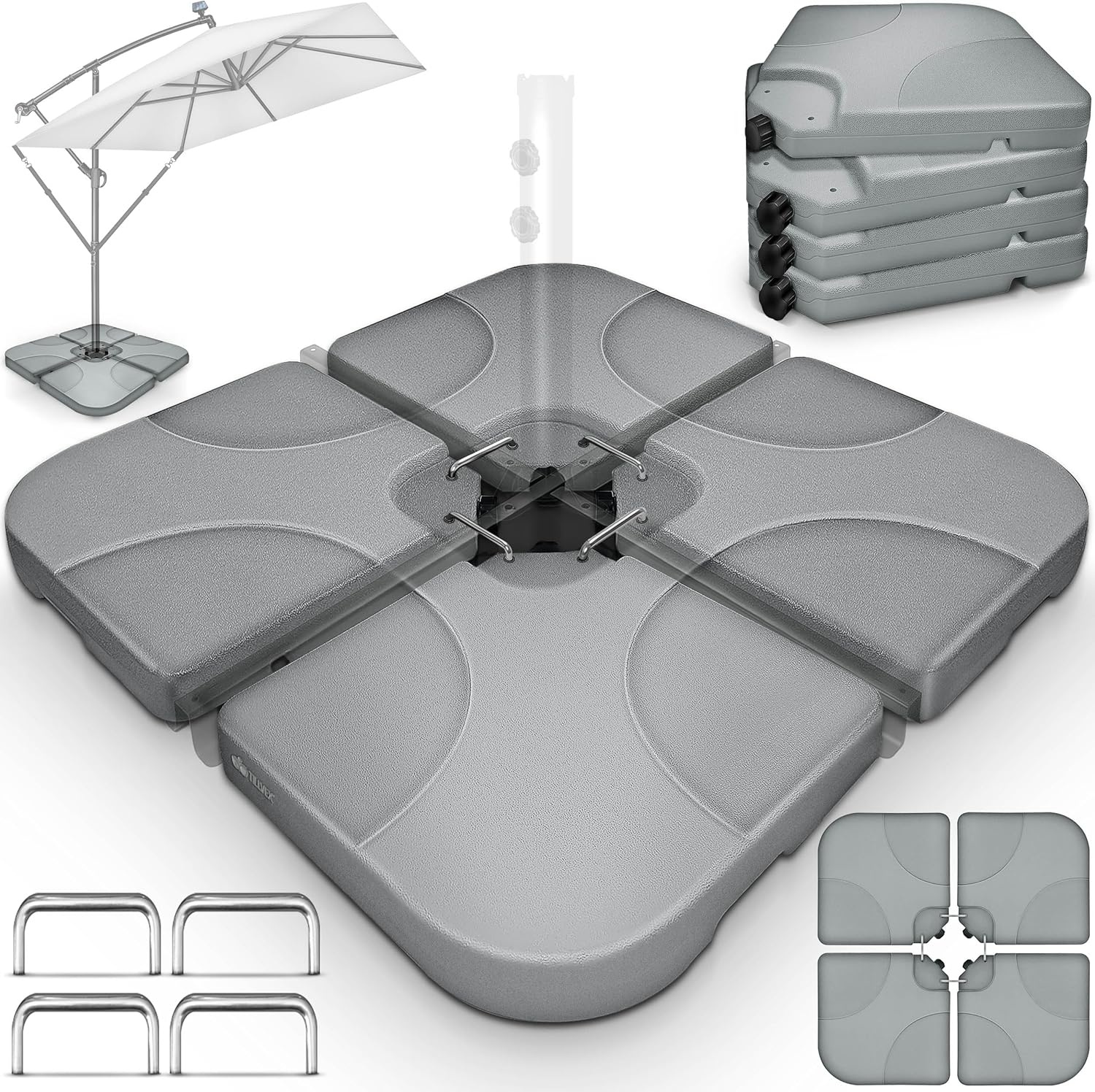 - tillvex® Base per ombrellone 90 litri (120 kg sabbia) da 4 pezzi, decentrato con connettore metallico – grigio granito