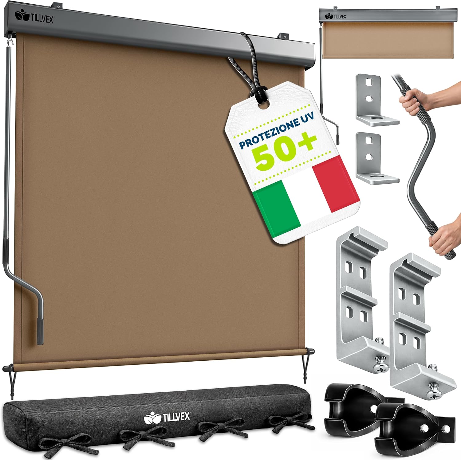 Una tenda da sole verticale non è solo “ombra”: serve soprattutto a migliorare comfort e privacy, gestendo meglio la luce quando il sole arriva di lato (tipico su balconi e terrazze) oppure quando vuoi schermare una zona esterna senza perdere troppo vista. La tillvex® in alluminio, con copertura avvolgibile e regolazione in altezza tramite manovella, punta proprio a questo: protezione solare e visiva per ambienti come balcone, terrazza e giardino.