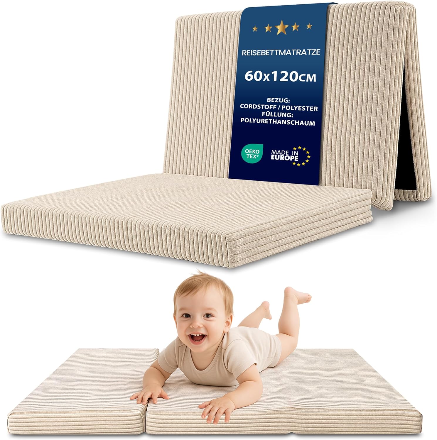 Totsy Baby Materasso Pieghevole Bambini 60x120 cm con rivestimento sfoderabile lavabile (Oeko-Tex), beige