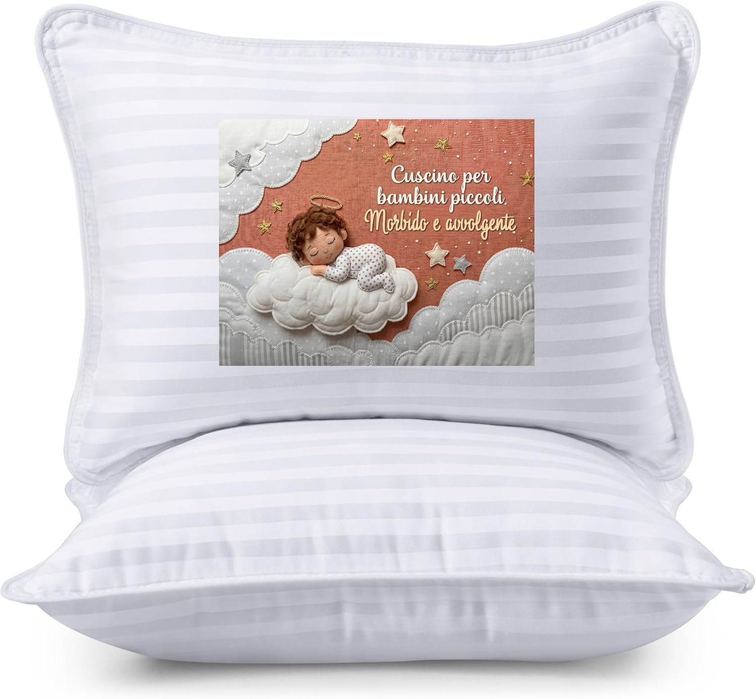 Il set contiene due cuscini identici, utili per mantenere una camera coordinata e avere sempre un ricambio a portata di mano. La federa in policotone 250 fili assicura una sensazione morbida al contatto con la pelle, mentre la struttura mantiene una fermezza adatta ai bambini piccoli. Secondo il produttore la combinazione tra morbidezza e compattezza favorisce una postura corretta durante il riposo. 🛌