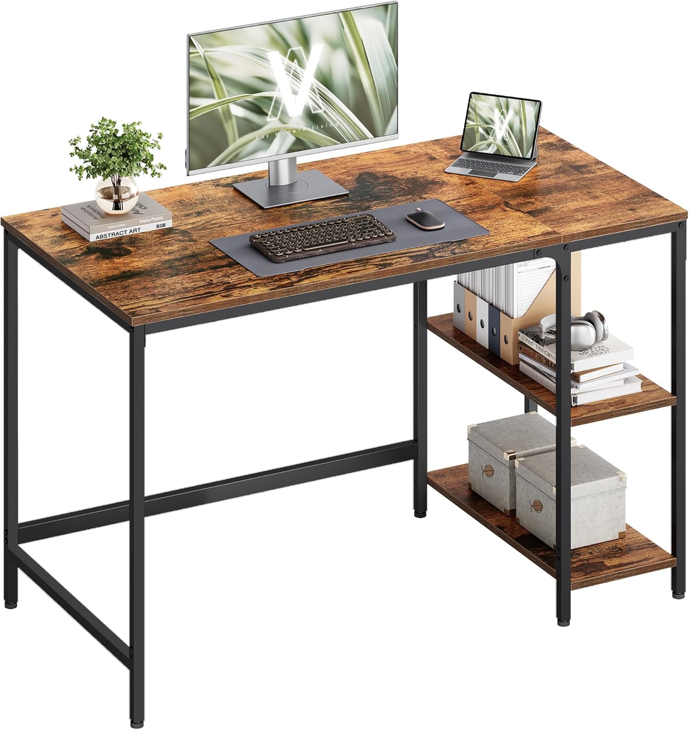 VASAGLE LWD47X scrivania per computer con 2 ripiani laterali (sinistra o destra), struttura in acciaio marrone vintage e nero