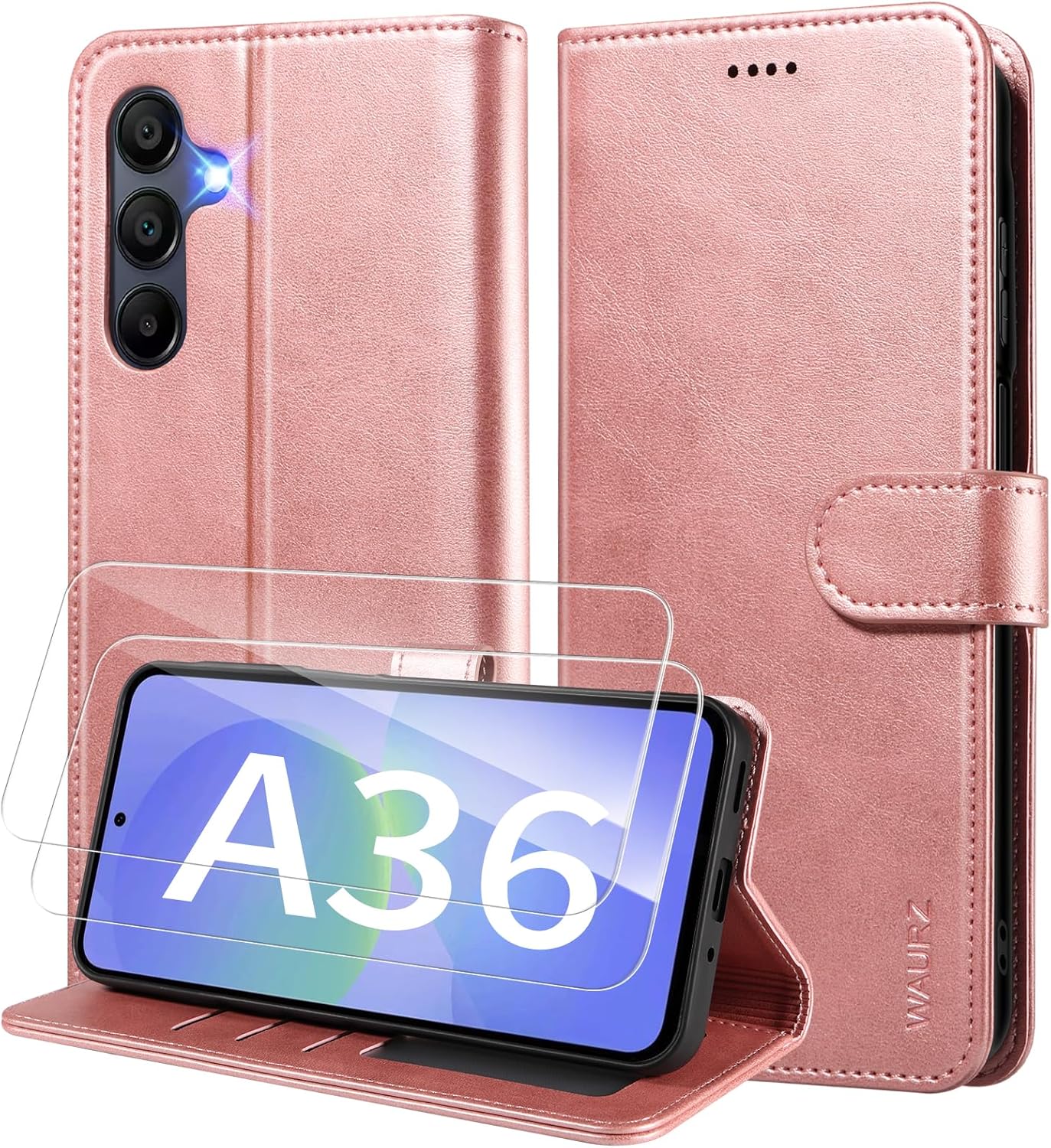 WAURZ Cover a libro in pelle per Samsung Galaxy A36 5G (rosa) con protezione schermo e porta carte