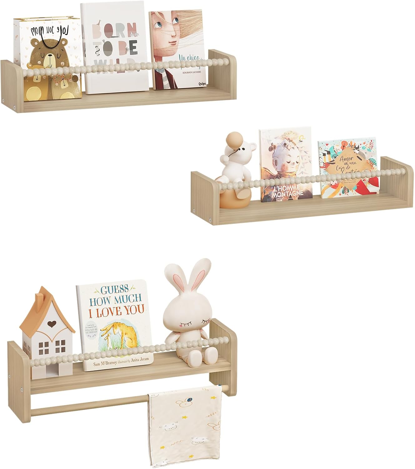 WOLTU set di 3 librerie da parete per bambini in legno massello, 50 cm