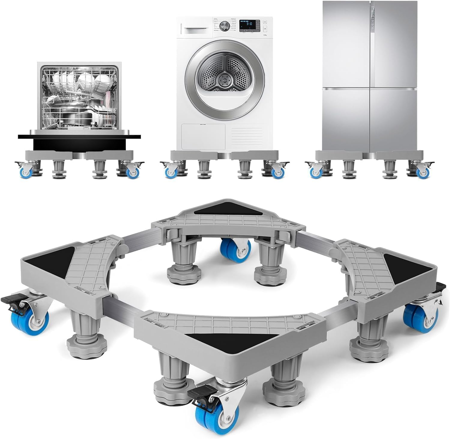 WUFANC Base per Lavatrice con 8 piedi + 4 ruote regolabili (42–66 cm), antiscivolo e antiurto