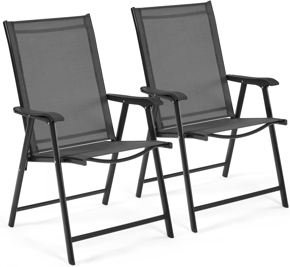 - Yaheetech set di 2 sedie da giardino pieghevoli con braccioli, telaio in metallo e tessuto traspirante (portata 100 kg) – Nero