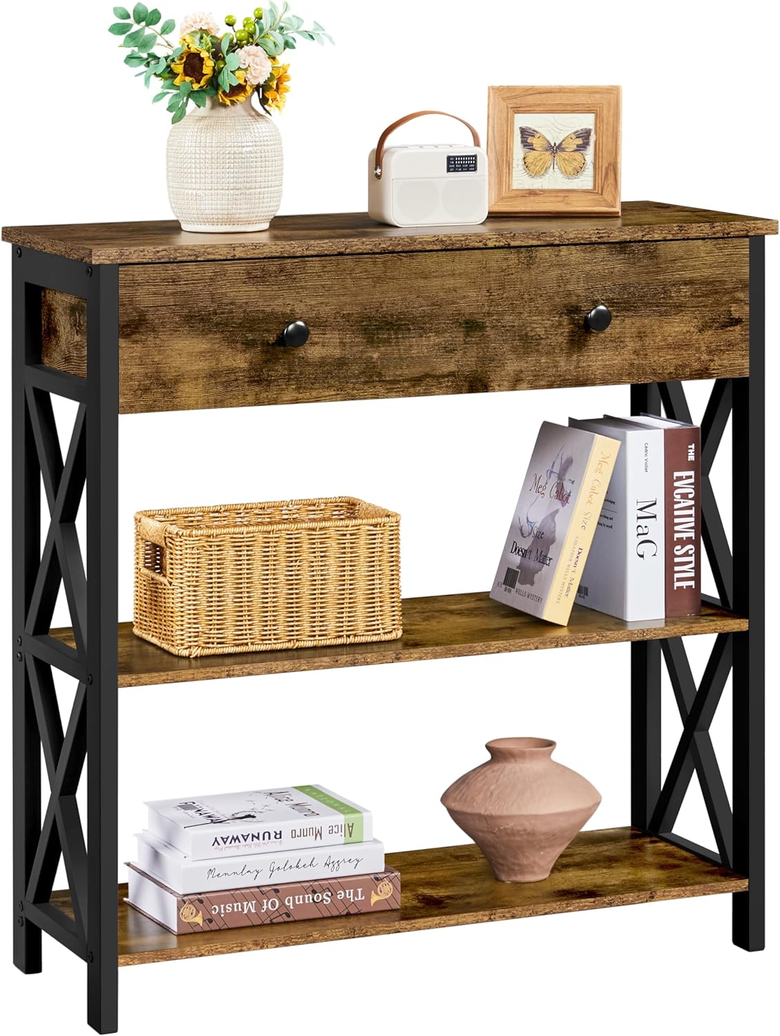 La combinazione di estetica e resistenza è evidente all'uso quotidiano, la struttura a X assicura robustezza senza appesantire il design. La presenza di un cassetto capiente consente di nascondere piccoli oggetti, mentre i ripiani offrono flessibilità di organizzazione. La finitura marrone rustico si abbina facilmente a diversi stili d'arredo. Considera che il montaggio richiede qualche minuto e che gli elementi metallici necessitano di attenzione durante il trasporto, per evitare graffi alla vernice. 🧰