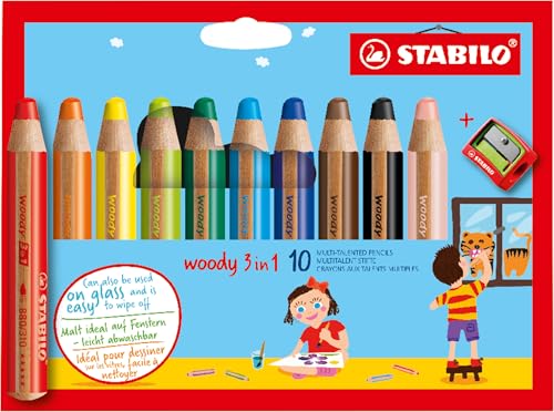 STABILO Lápiz multitalento woody 3 en 1 — estuche 10 colores