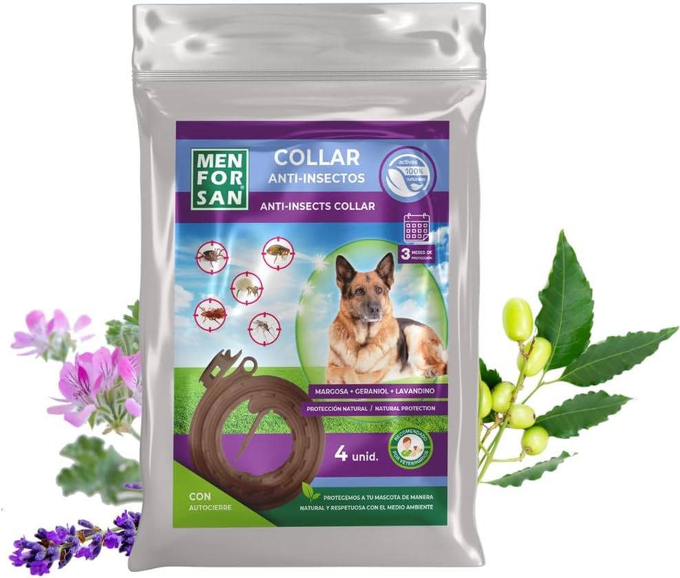 MENFORSAN Pack 4 collares anti-insectos para perros