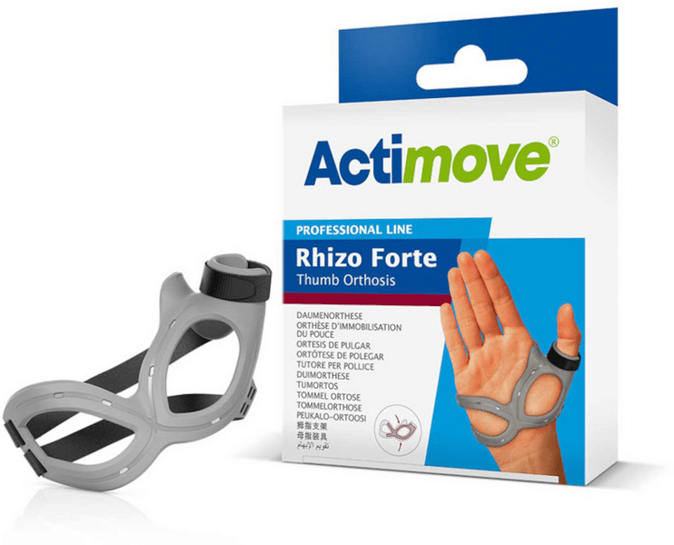 Este soporte para pulgar Actimove Rhizo Forte talla L para mano izquierda alivia el dolor localizado en la base del pulgar y mantiene movilidad del resto de la mano. Ofrece sujeción dirigida sin inmovilizar la muñeca, lo que facilita tareas cotidianas y permite seguir con actividad normal. El diseño ligero y con bordes redondeados mejora el confort durante usos prolongados.