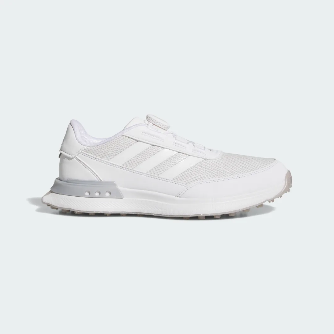 Los adidas S2G 25 BOA Spikeless Golf Shoes en color blanco están pensados para quienes quieren calzado de golf con un sistema de ajuste por BOA y suela “spikeless” (sin clavos). Sobre el papel, es un enfoque muy práctico para jugar y, sobre todo, para moverse por el campo sin el inconveniente de los spikes metálicos o duros típicos.