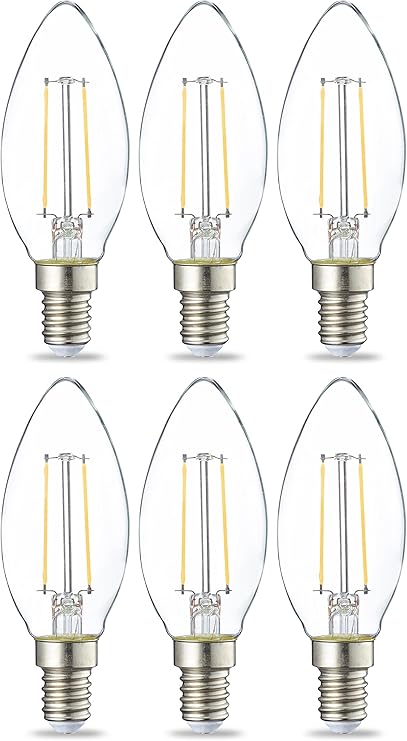 Amazon Basics Bombilla LED E14 Vela, 2.1W, Blanco Cálido, Pack 6
